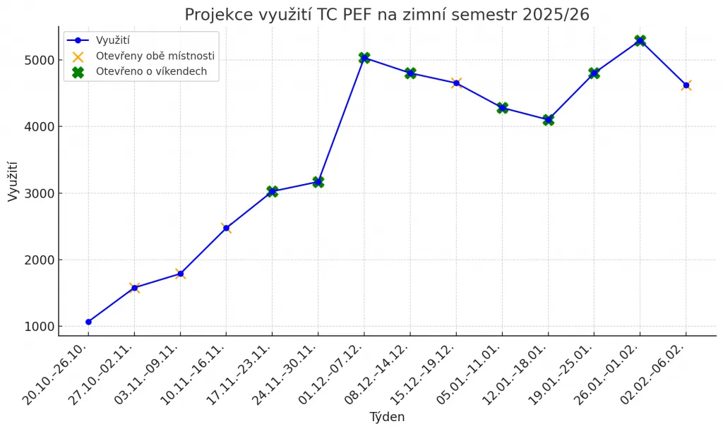 Obrázek: Projekce využití Testovacího centra PEF na zimní semestr 2025/26